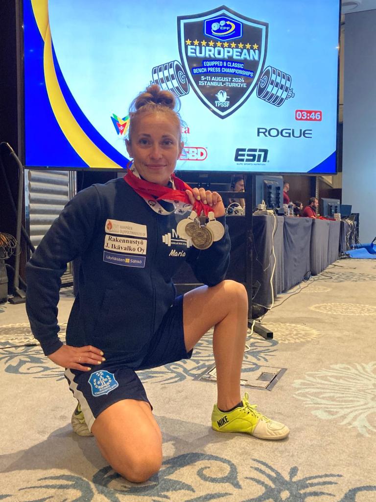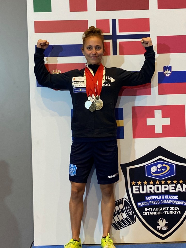 11.8.2024 Maria Kojoukhova Penkkipunnerruksen EM, Istanbul Turkki, Varustepenkkipunnerrus EM pronssia ja joukkuekultaa