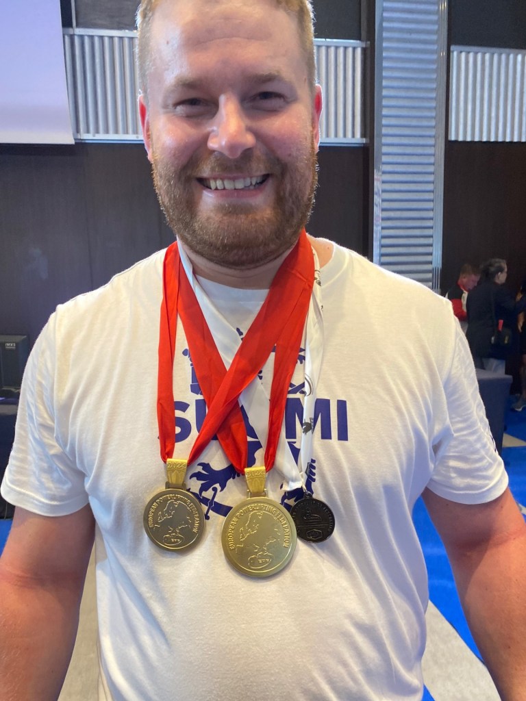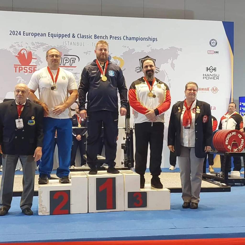 9.8.2024 Mikko Hänninen Penkkipunnerruksen EM, Istanbul Turkki, Varustepenkkipunnerrus EM Kultaa ja joukkuekultaa