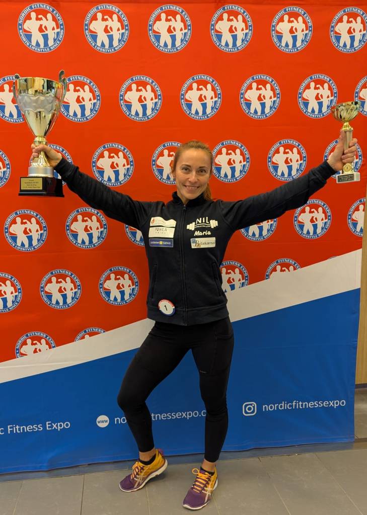 6.4.2024 Maria Kojoukhova Lisäpainoleuanvedon SM hopeaa, Voimapunnerrus max. Kultaa, Toistovoima Kultaa, Otevoima Kultaa Expo messut Wanha Satama